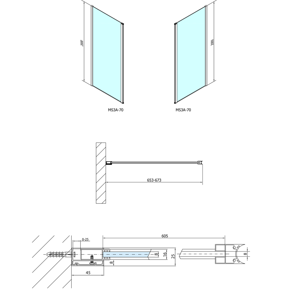 POLYSAN - MODULAR SHOWER stěna k instalaci na zeď, pro připojení otočného panelu, 700 (MS3A-70)