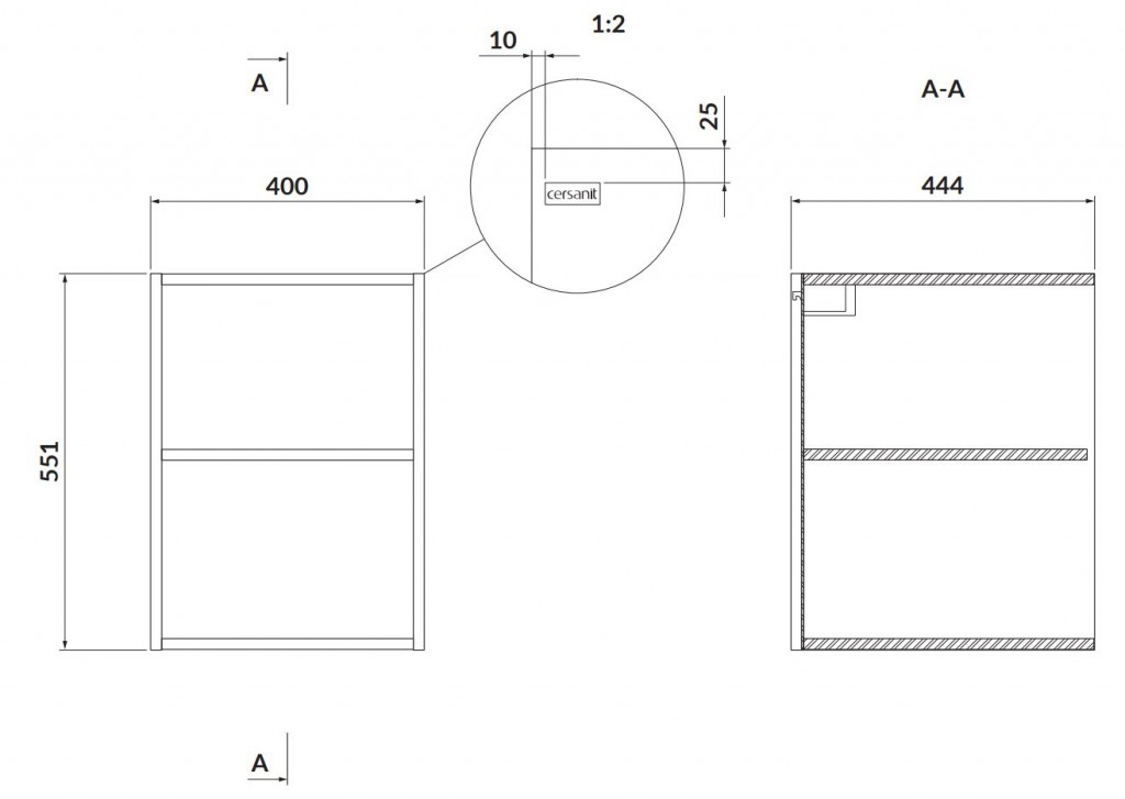 Modulová otevřená spodní skříňka série LARGA s jednou policí uvnitř je vyrobena z dřevotřískové desky s certifikátem FSC MIX CREDIT SGSCH-COC-007574.