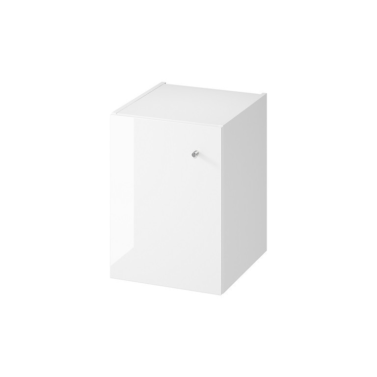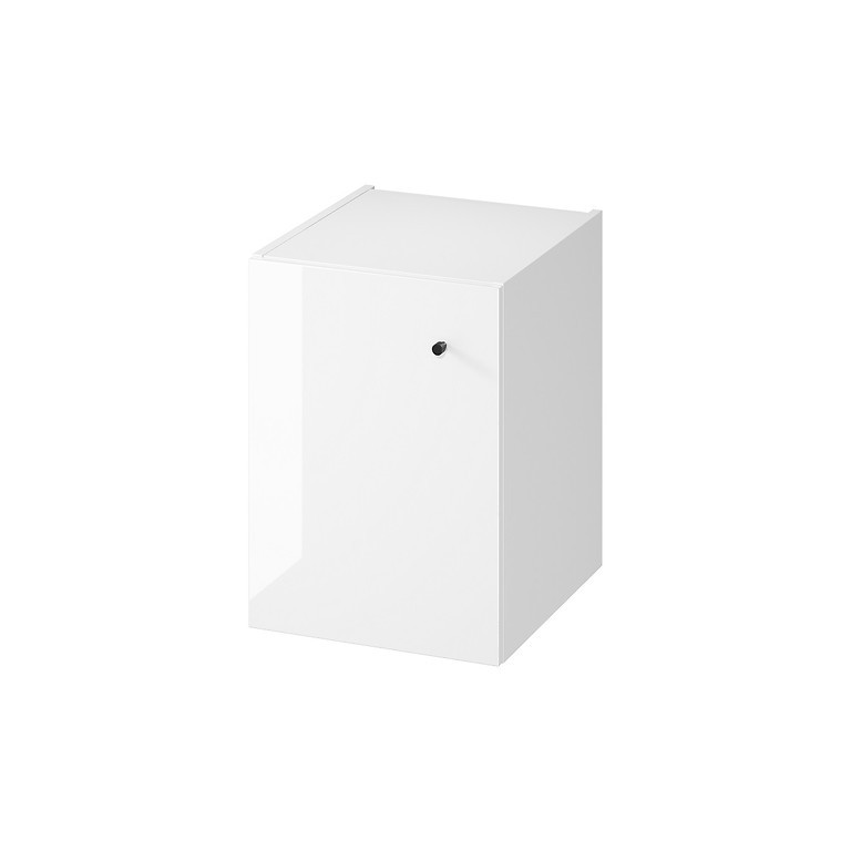 Závěsná modulová spodní skříňka LARGA s lakovanými lesklými dvířky, jednou policí uvnitř. Nábytkové frézované uchycení lze vybrat ve třech barvách (stříbrné, zlaté, černé), k zakoupení samostaně, není součástí skříňky.