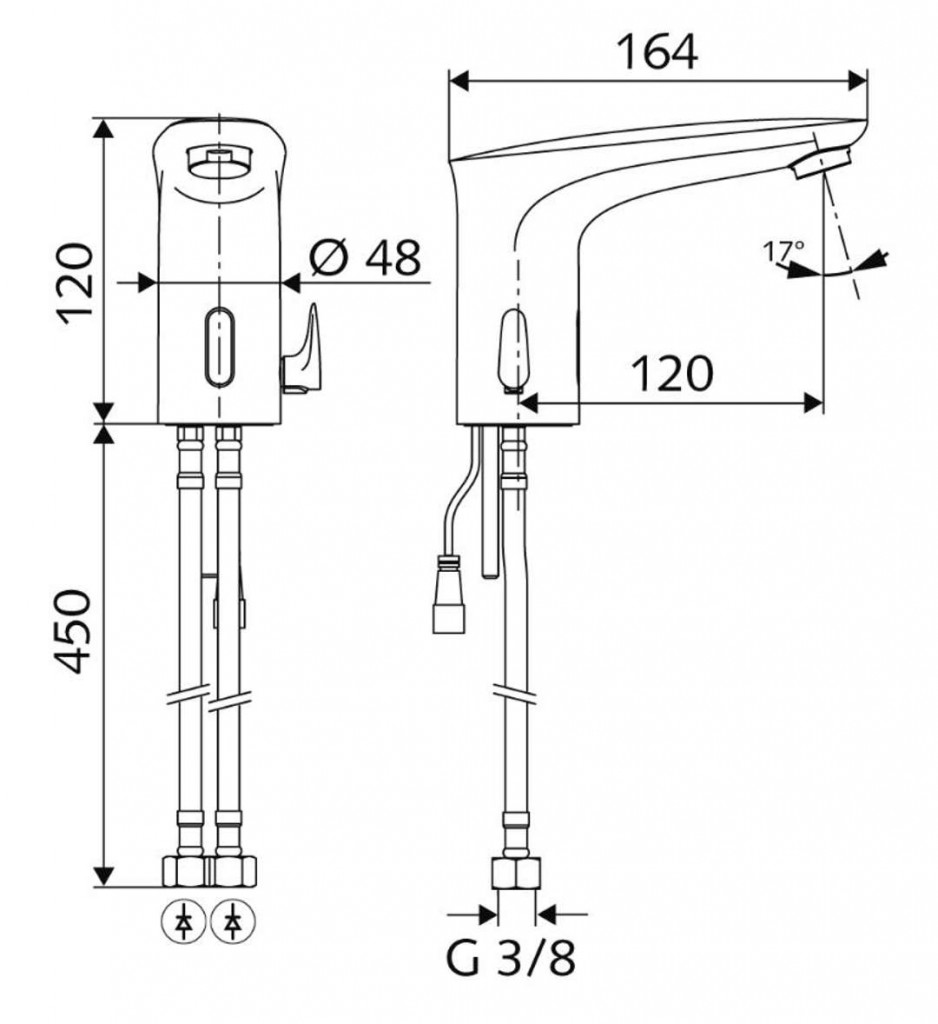 - připojení 2 flexibilní hadičky: vnitřní závit G 3/8