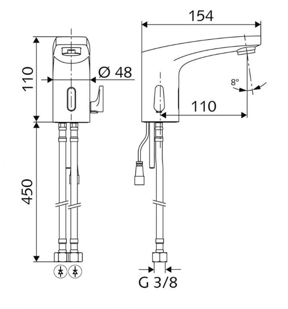 - připojení 2 flexibilní hadičky: vnitřní závit G 3/8