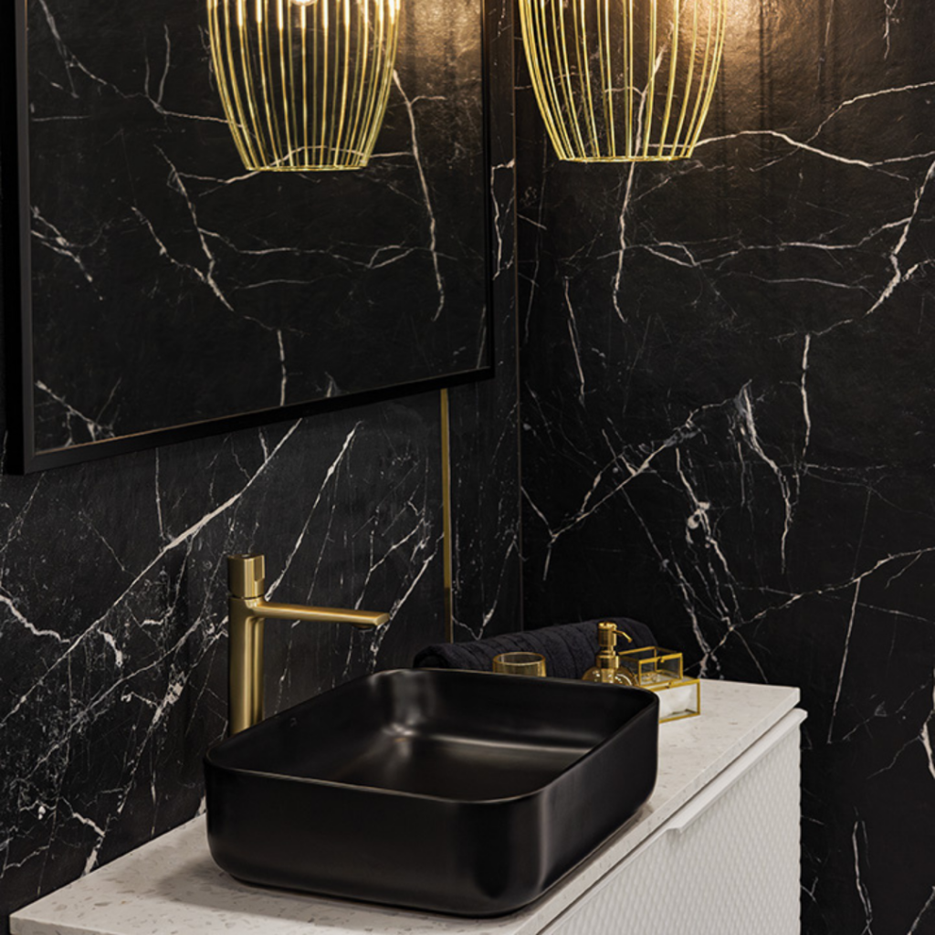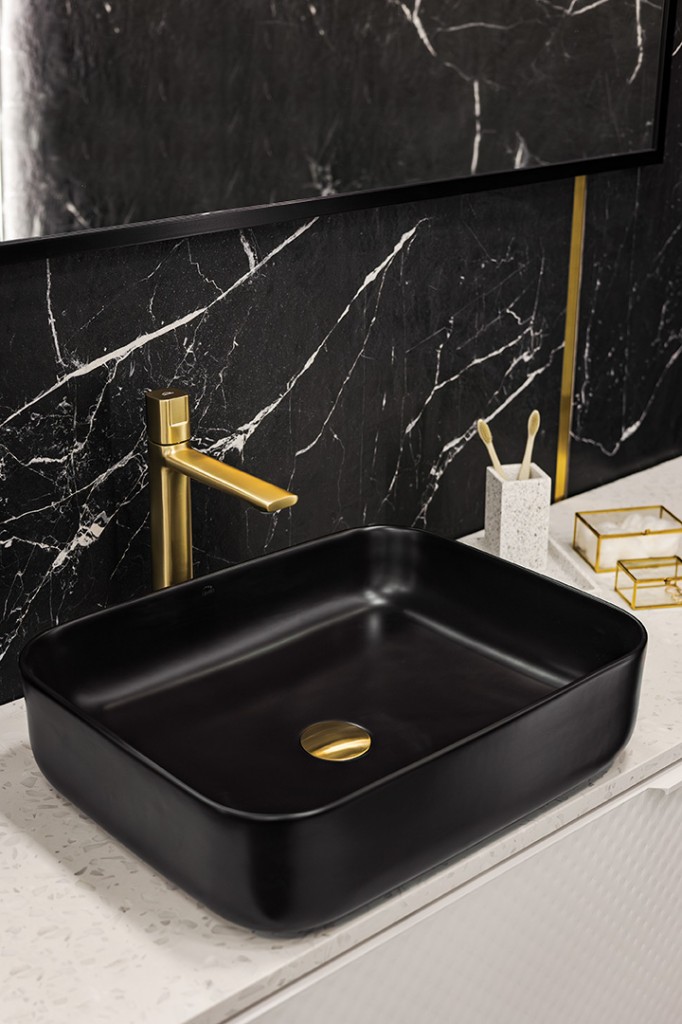 Umyvadlo Mogami bylo vytvořeno s ohledem na moderní design. Mogami nabízí dvě povrchové úpravy: černou a dvoubarevnou kombinaci, kde se nadčasová bílá prolíná s černým akcentem a vytváří tak jedinečnou kompozici. Pohodlné pro každodenní použití, jeho rozměry 50 x 40 cm jsou vyrobeny z vysoce kvalitní keramiky. Jeho elegantní obdélníkový tvar se zaoblenými rohy představuje model umyvadla na desku, který váží něco málo přes 10 kg. Díky vysokým stěnám se voda nevylévá na desku ani na podlahu. Mogami bude perfektně doplňovat ostatní produkty Laveo. Unikátní barevná kombinace Mogami vypadá velmi originálně a potěší všechny vaše hosty!