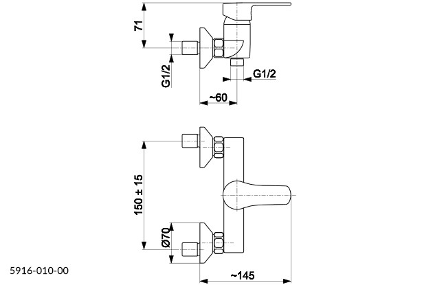 Nástěnná sprchová baterie MOHIT od výrobce KFA ARMATURA s roztečí 150 mm bez příslušenství.