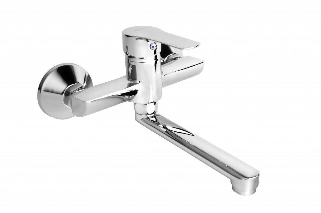 Nástěnná umyvadlová baterie MOHIT od výrobce KFA ARMATURA s roztečí 150 mm. Výhodou je otočné ramínko o délce 150 mm a perlátorem.