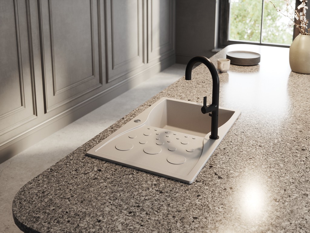 Dřezy Molokin, dostupné v elegantní béžové, černé a šedé barvě, jsou perfektním řešením pro ty, kteří hledají kombinaci vytříbeného designu a praktičnosti. Díky své decentní estetice se dokonale hodí do moderních i klasičtějších kuchyní a dodávají jim nadčasovou eleganci. Jedním z charakteristických prvků série Molokin je unikátní odkapávací lišta s motivem kruhů různých velikostí. Tento dekorativní detail slouží i praktickému účelu – umožňuje hladký odtok vody a zanechává povrch suchý a hygieničtější. Toto řešení se promítá do většího pohodlí při každodenním používání. Dřezy jsou vyrobeny z odolného a odolného žulového kompozitu, který zajišťuje odolnost vůči vysokým teplotám, tepelným šokům, poškrábání a změně barvy. To znamená, že získáte produkt, který si po mnoho let zachová svůj bezchybný vzhled a kvalitu. Jemně zaoblené hrany, oboustranný design a minimalistický tvar činí z dřezu Molokin přizpůsobivý různým uspořádáním kuchyní a individuálním preferencím uživatelů. Jeho všestrannost zaručuje perfektní zapadání do mnoha stylů interiéru – od industriálního až po skandinávský. Pokud je pro vás důležitá estetika, funkčnost a snadné čištění, bude dřez Molokin perfektní volbou. Tento produkt je navržen s ohledem na moderní potřeby – nejenže vypadá krásně, ale především zjednodušuje každodenní kuchyňské práce.