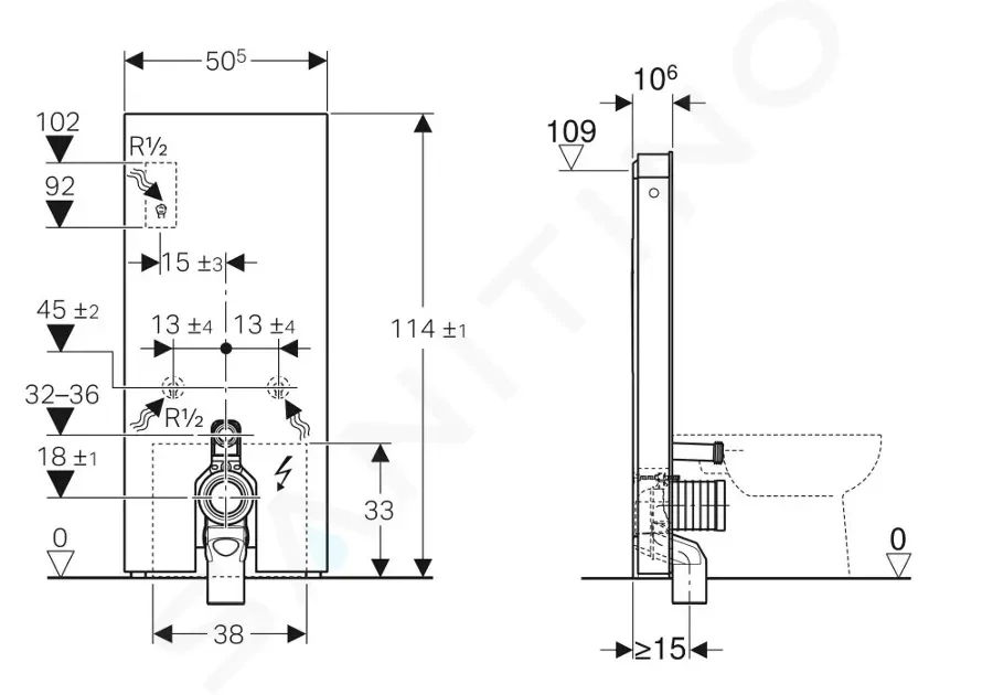 - k připojení kompletního stojícího WC Geberit AquaClean Tuma