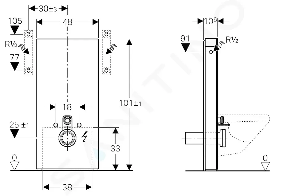 - Výška upevnění WC keramiky 35 ± 1 cm
