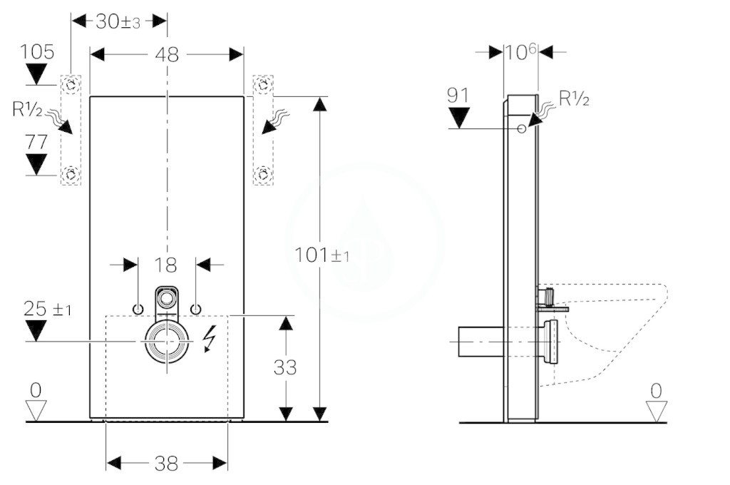 - Výška upevnění WC keramiky 35 ± 1 cm