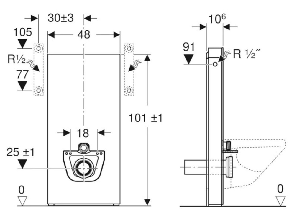 - výška upevnění WC keramiky 35 ± 1 cm