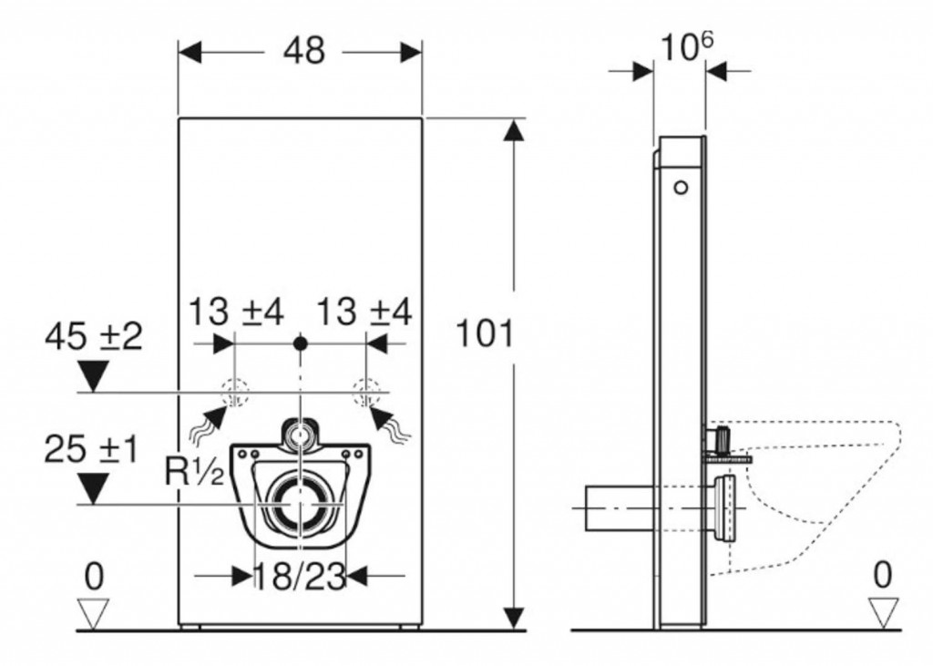 - výška upevnění WC keramiky 35 ± 1 cm