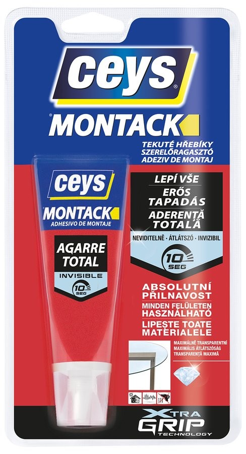 Montážní lepidlo pro lepení všech typů materiálů na různé podklady vyžadující vždy čistá zakončení. Je vhodné pro jemné a transparentní materiály (zrcadla, porex®, mramor…). Jeho vyplňovací schopnosti umožňují aplikace i na nerovné plochy. Odolává vlhkosti. Lepení je rychlé a trvalé. Montack Lepí vše neviditelně je možné bez obav použít i na pěnový polystyren. Nově s technologií Xtra Grip - rozvětvené polymery vytvářejí trojrozměrnou síťovou strukturu a tím zajišťují extrémní počáteční přilnavost, rychlejší přilnutí a maximální konečnou odolnost lepidla.