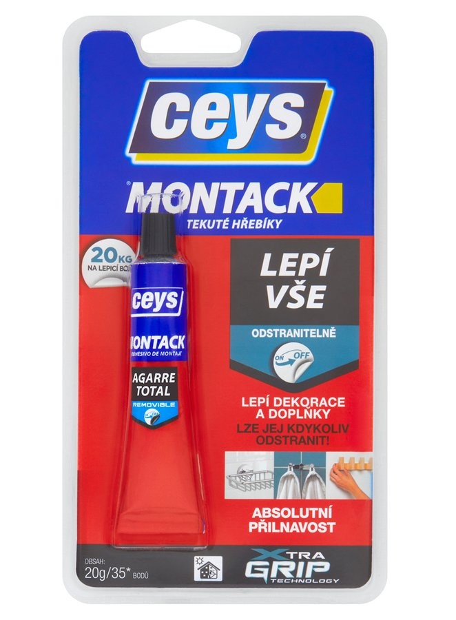 Montážní lepidlo s absolutní přilnavostí určené k připevnění doplňků, příslušenství a dekoračních prvků, protože lepí pevně, vytváří odolné a trvalé spoje a zároveň jej lze kdykoli snadno a čistě odstranit bez zanechání stop. S technologií Xtra Grip - rozvětvené polymery vytvářejí trojrozměrnou síťovou strukturu a tím zajišťují extrémní počáteční přilnavost, rychlejší přilnutí a maximální konečnou odolnost lepidla.