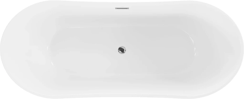 Volně stojící oválná akrylátová vana série MONTANA od výrobce MEXEN s přepadem a umístěném odpadu na středu vany.