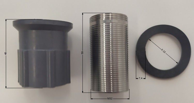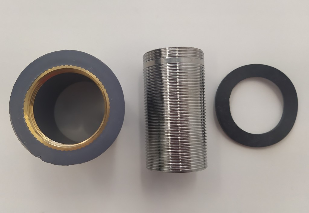 Tento komponent se používá pro instalaci a upevnění umyvadlových a dřezových baterií. Skládá se ze závitové kovové trubky, šedé plastové, závitové redukce s mosaznou vložkou, 2x gumové podložky (těsnění) a jedenoho o-kroužku.