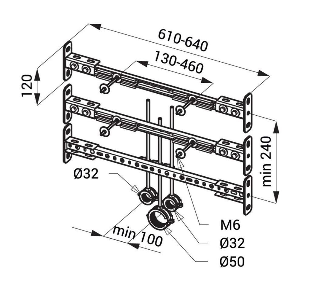 Rám určený do SDK pro uchycení nerezových pisoárů a nerezových umyvadel
