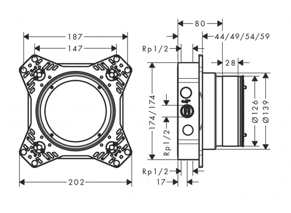 Při montáži základního tělesa iBox universal 2 v kombinaci s vrchními sadami (sprchových, vanových a horních sprch), které jsou původně kompatibilní se základním tělesem iBox universal - doporučujeme pro zachování kompatibility zakoupit adaptér.