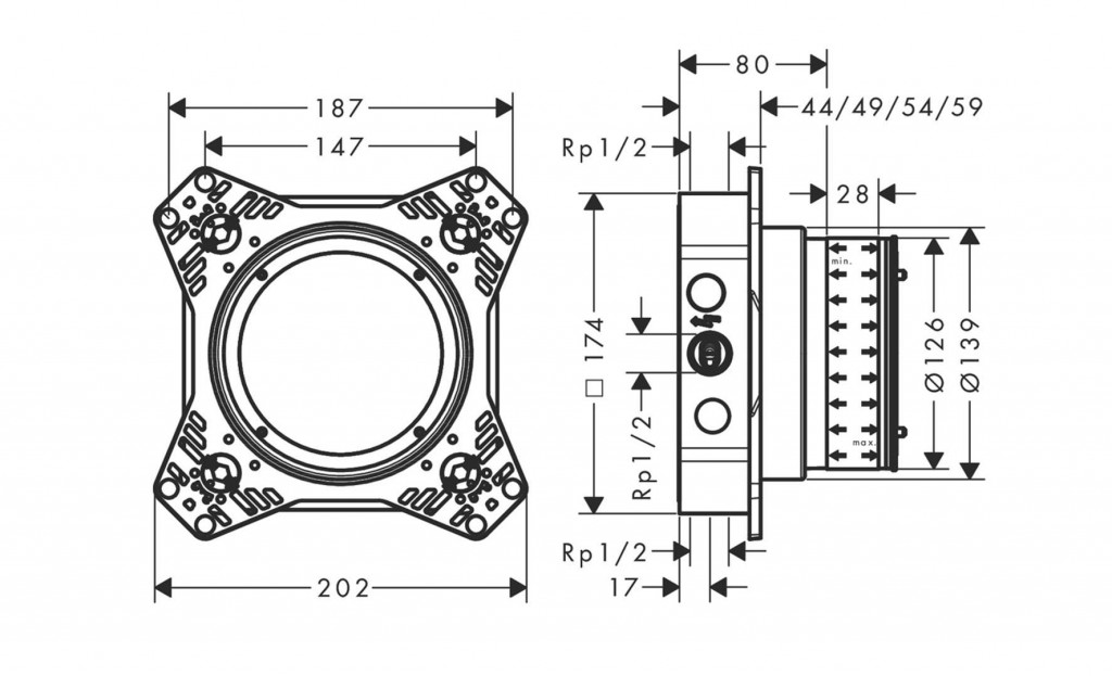 - vhodné pro všechny vrchní sady sprchových a vanových a termostatů pro skrytou instalaci - AXOR ShowerSelect ID