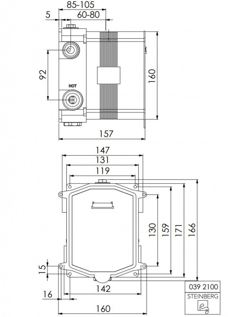 - pro vanové/sprchové jednopákové baterie s ovládáním Pushtronic