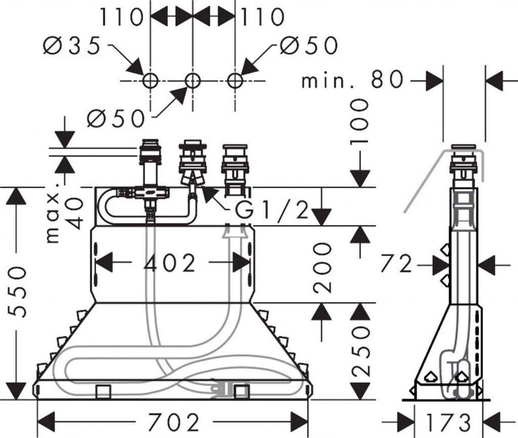Montážní těleso pro tříotvorovou pákovou vanovou baterii na okraj vany