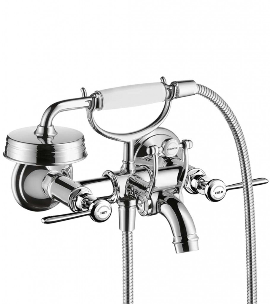 Nástěnná vanová baterie s ruční sprchou a kovovou hadicí