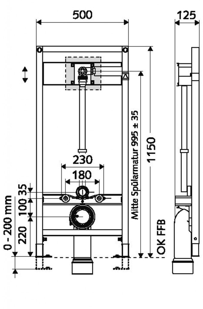 Montážní modul pro závěsné WC s podomítkovým splachovačem WC COMPACT II na mechanické nebo elektronické spouštění