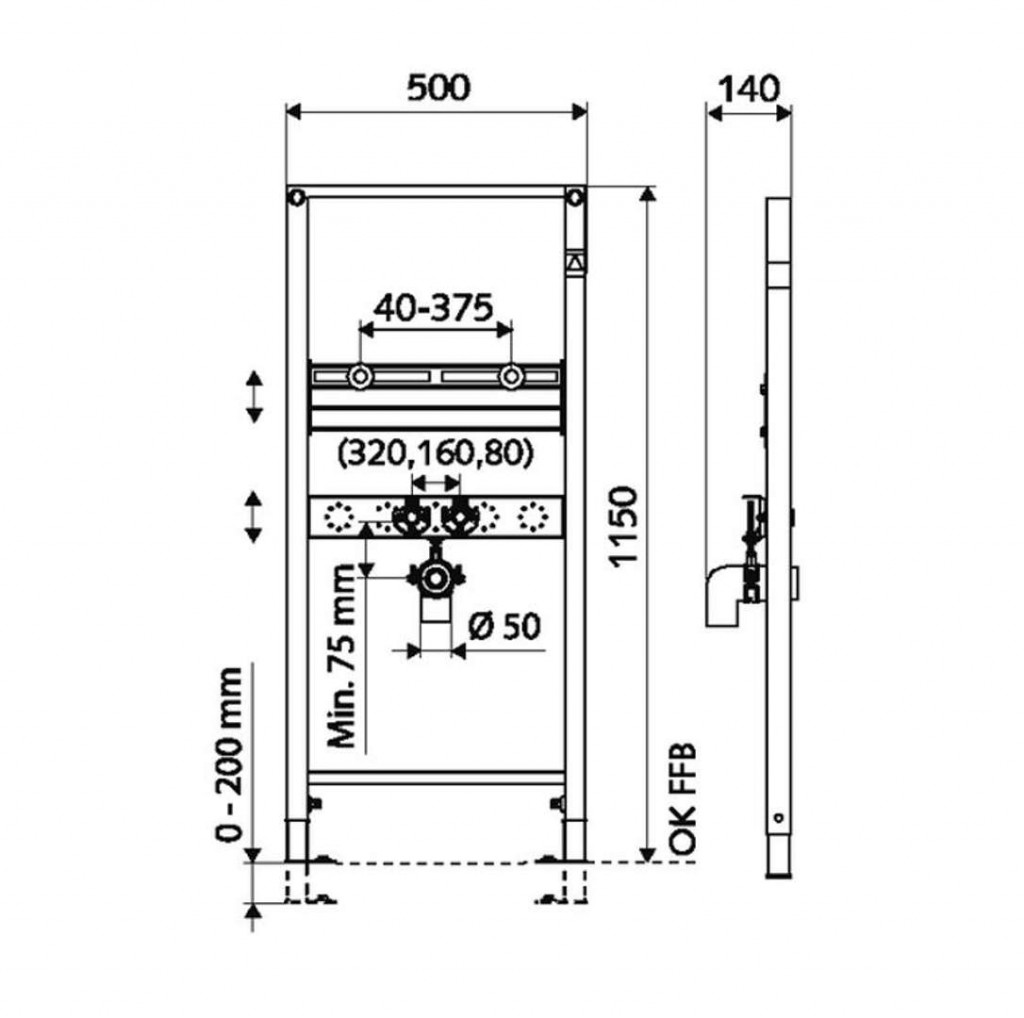 - traverza pro upevnění umyvadla 40-375 mm, výškově přestavitelná