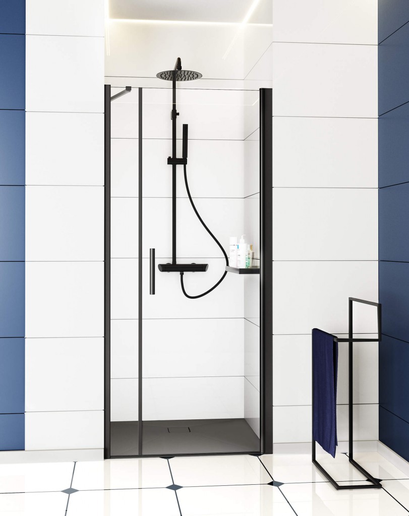 Sprchové dveře MOON výšky 2000 mm s pevným polem a křídlovými dveřmi otevíranými pouze ven, jsou určeny k instalaci do niky /mezi dvě stěny/. Jako výplň je použito transparentní sklo o síle 6 mm, které je podrobeno procesem kalení, kdy se sklo stává tvrdším, pružnějším a odolnějším. Sprchová zástěna je pokryta vrstvou Active Cover, která má hydrofobní vlastnosti. Nejsou zde žádné nevzhledné skvrny a čištění není potřeba tak často. V nabídce jsou rámy v chromovém a černém provedení.
