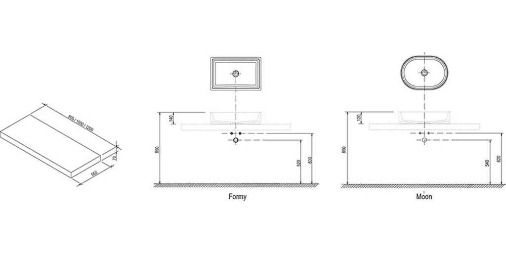 Desky tvarujeme do dvou podob. Tvar „L“ nabízí vaší koupelně designově výrazný prvek, neviditelný způsob montáže a přesně dané místo, kam umyvadlo posadit. Tvar „I“ naopak univerzální řešení, které poskytuje prostor vaší kreativitě.