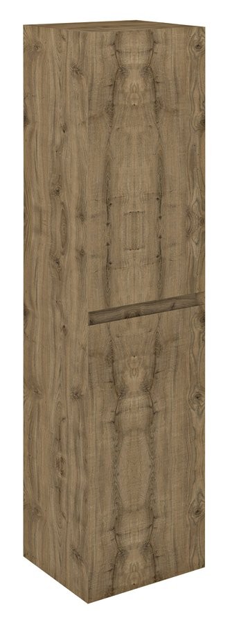 Kolekci doplňují vysoké skříňky ve stejném stylu se zkosenými hranami čela. Dvířka jsou bezúchytková, otevírají se tahem a jsou vybavena zpomalovacími panty.