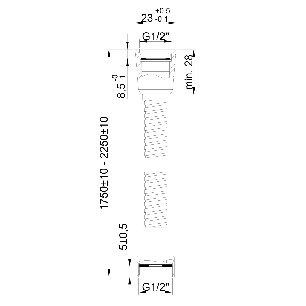 Ocelová sprchová dvouzámková hadice 175 cm, baleno v plastovém obalu.