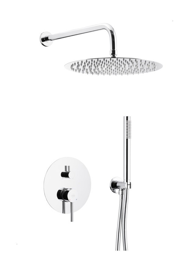 Mosazná podomítková baterie je vybavena keramickou kartuší, kde se mísí teplá a studená voda. Výhodou keramické kartuše je dlouhá životnost a nižší opotřebení používáním. Hlavová sprcha SLIM /2 mm/ je z nerezové oceli S304 se standardním připojením G1/2", opatřena gumovými tryskami, které zabarňují usazování vodního kamene. Hlavová sprcha je namontována pomocí sprchového ramene o délce 380 mm, které je vyrobeno také z nerezové oceli a přizpůsobeno montáži na zeď se standardním připojením G 1/2". Celý set je opatřen povrchovou úpravou, kdy je povrch odolný proti korozi a poškrábání. V setu samozřejmě nechybí ruční sprcha vyrobená z mosazi s jednou funkcí, připojením G1/2" a PVC hadicí dlouhé 1500 mm.