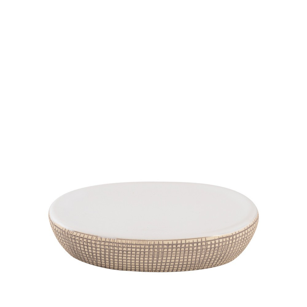 Mýdelnička ze série ISANA. Jeho pouzdro je vyrobeno z kameniny. Spodní hnědá část má drážky, které usnadňují držení, horní část má hladký povrch a je bílá.