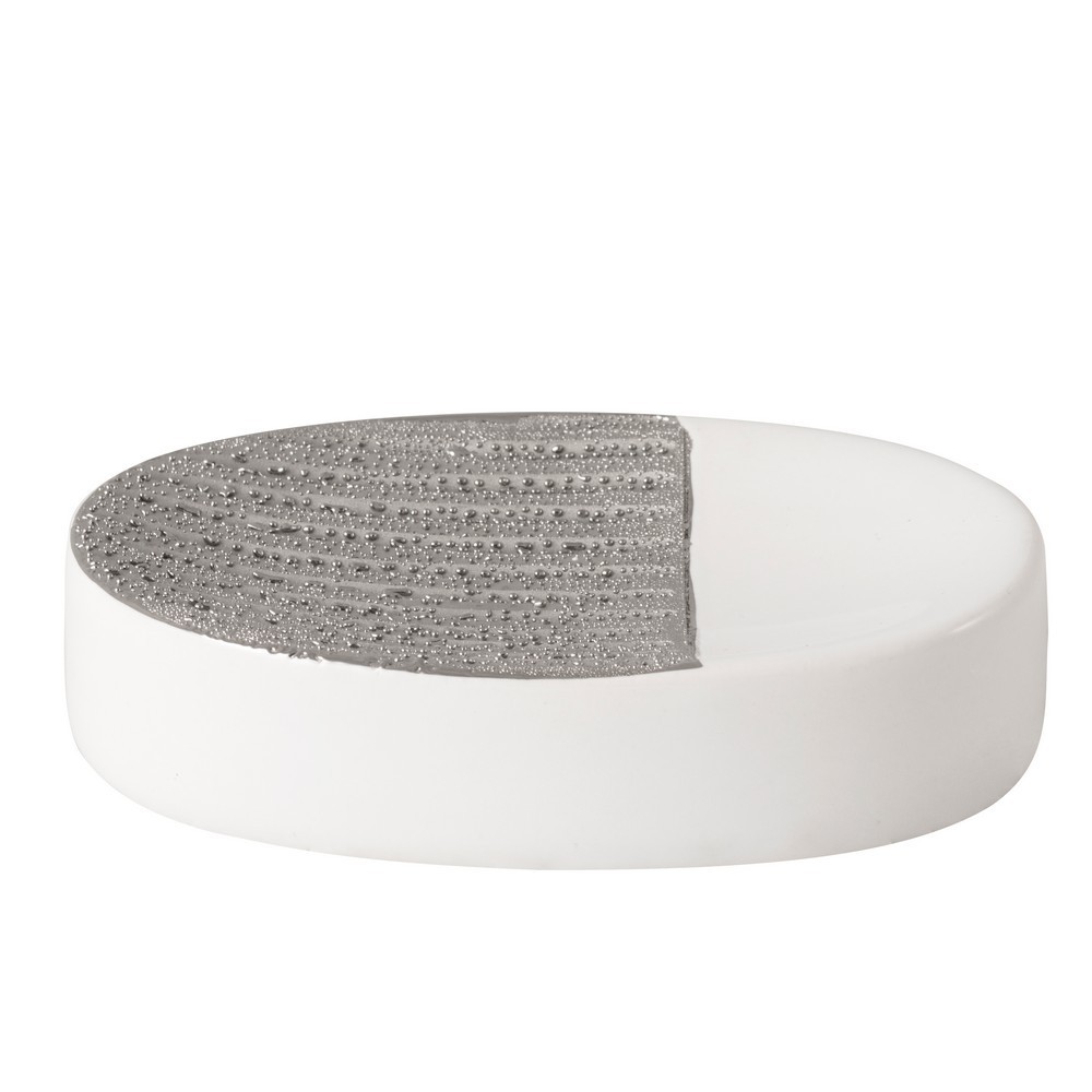 Keramická miska na mýdlo ve stříbrné a bílé barvě.
