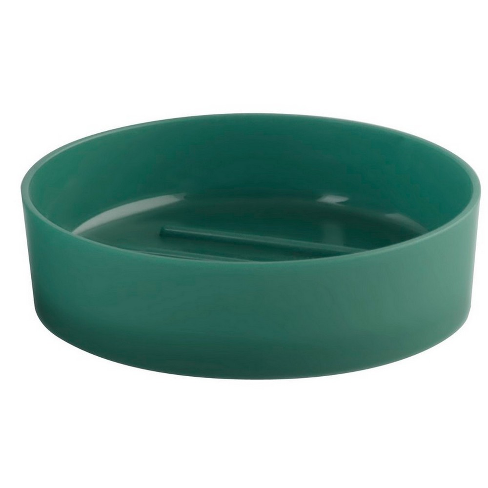 Plastová miska na mýdlo v módní lahvově zelené barvě.