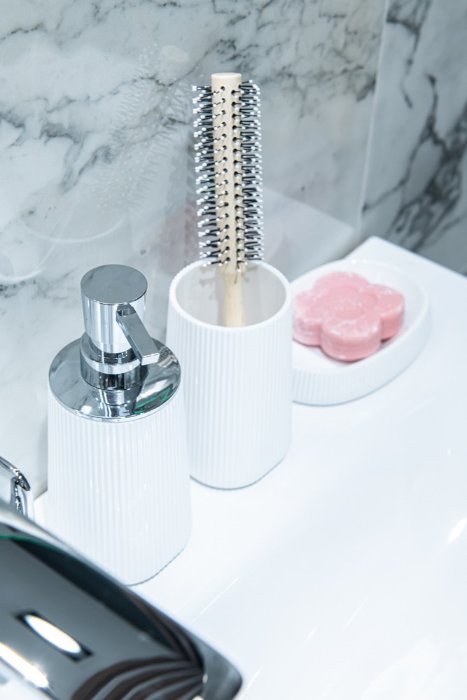 Mýdelnička ze série Zen v bílé barvě. To je kvintesence čisté formy a minimalismu. Textura produktu je velmi praktická při použití a zabraňuje vyklouznutí z rukou.