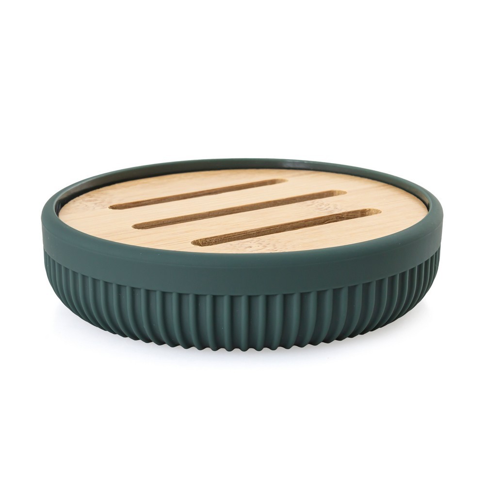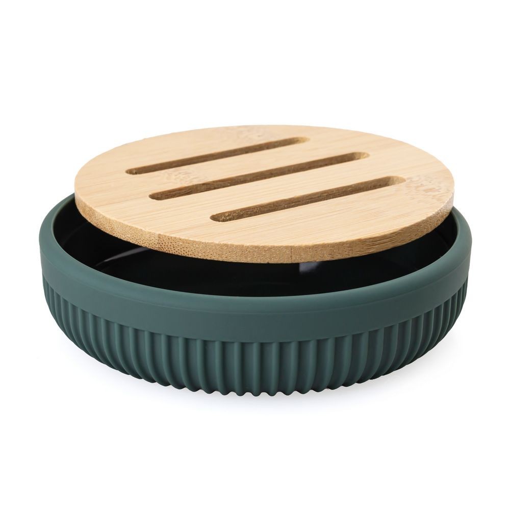 Mýdelnička ze série Frida zaujme krásným odstínem lahvově zelené. Vyrobeno z elegantního, matného plastu, dodává mu osobitý charakter. Vyznačuje se funkční odkapávací miskou, která chrání mýdlo před změkčením a nadměrným opotřebením. Díky možnosti vyjmout odkapávací misku je její udržování v čistotě bez námahy jednoduché. Odkapávač je navíc vyroben z přírodního bambusového dřeva, což mýdlovce dodává extra přirozené kouzlo.