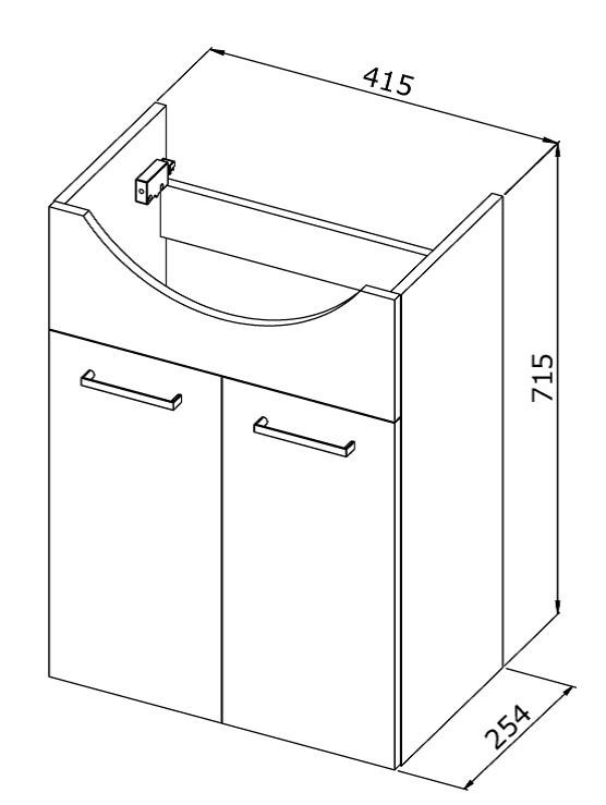 | Délka | Skříňka: 41,5 cm/ 50,8 cm/ 61,5 cmUmyvadlo: 45,5 cm/ 55 cm/ 65 cm |