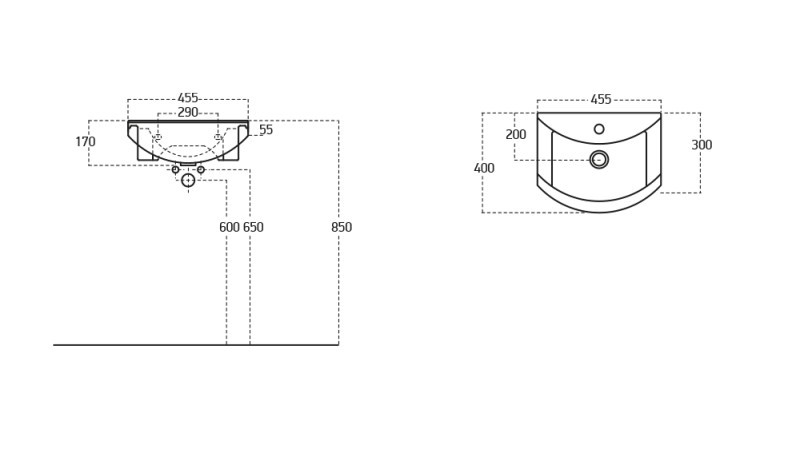 - keramické umyvadlo: 55 × 50 × 17 cm