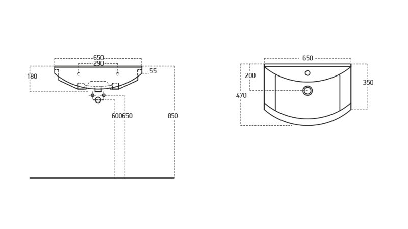 - keramické umyvadlo: 65 × 46 × 19 cm