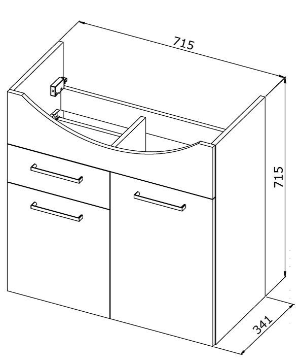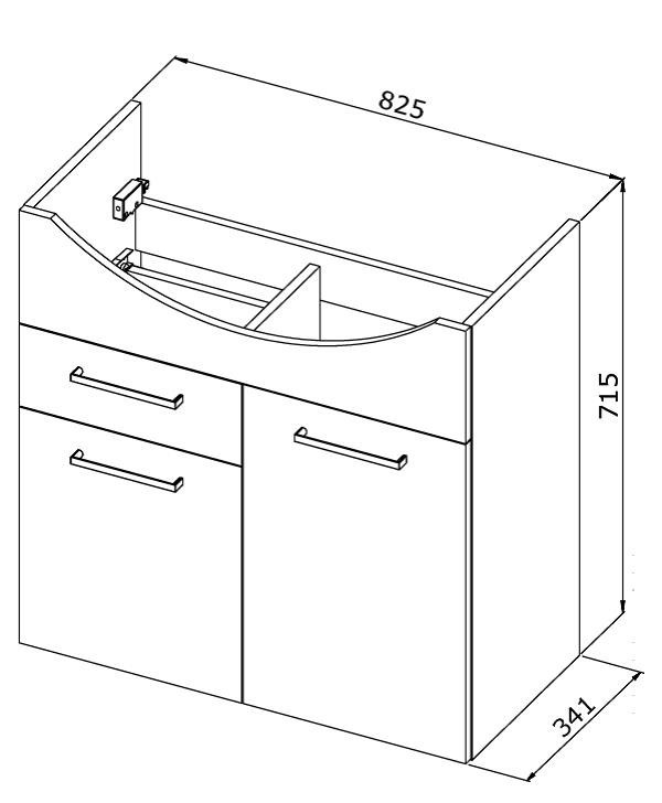 - spodní skříňka: 82,5 × 34,1 × 71,5 cm