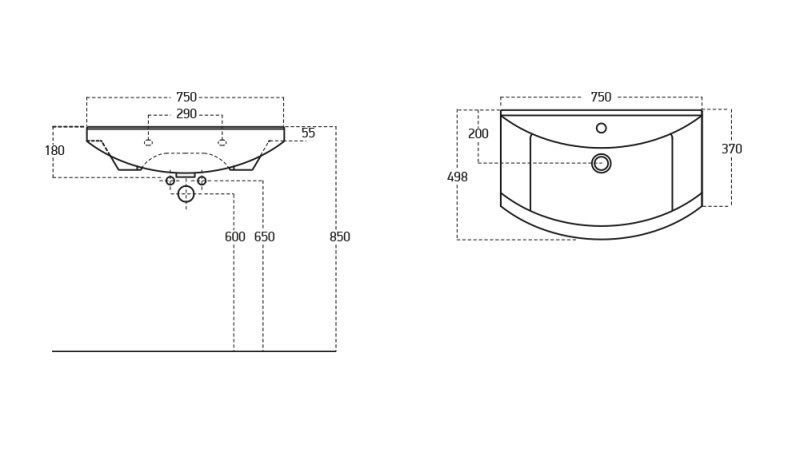 - keramické umyvadlo: 75 × 48,5 × 19 cm