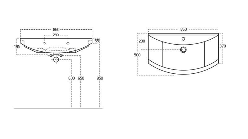 - keramické umyvadlo: 86 × 50 × 19,5 cm