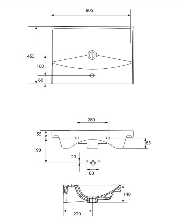 Součástí umyvadla není výpust ani baterie. To je možno vybrat a objednat v kolonce příslušenství.