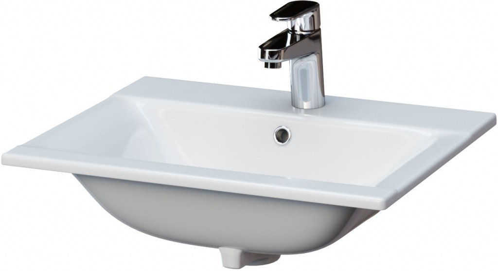 Nábytkové umyvadlo ONTARIO NEW 60 bílé barvy s otvorem pro baterii a s přepadem. Umyvadlo lze instalovat na desku nebo se skříňkami z řady COLOUR, MELAR, MESTA, SMART, STILLO.