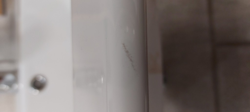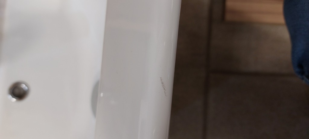poškozené umyvadlo na přední hraně. Více informací ohledně vady naleznete ve fotogalerii.