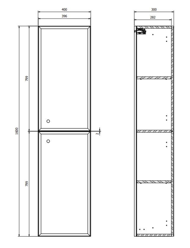 Korpus nábytkového sloupku MILLE, je vyroben z dřevotřískové desky 16 mm a čela z MDF desky, která jsou upravena frézováním. Dveře jsou vybaveny systémem tichého zavírání „soft close“, který zabraňuje příliš rychlému a hlučnému zavírání. Díky tomu je jejich každodenní používání pohodlné.