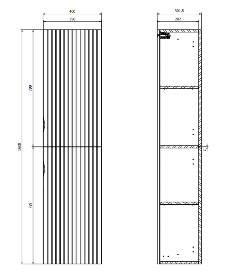 Tento koupelnový sloup je funkčním řešením, které nabízí spoustu úložného prostoru díky třem vnitřním policím. Je vybaven mechanismem tlumeného zavírání, který zajišťuje tiché a plynulé zavírání dveří, což zvyšuje komfort používání. Přední strana sloupu je vyrobena z drážkované MDF desky laminované v matném provedení, což dodává nábytku elegantní vzhled, zatímco korpus z laminované dřevotřísky v matném provedení zaručuje odolnost a snadnou údržbu. Součástí tohoto nábytku jsou dvě sady kovových úchytů (černé a chromované), díky nimž si uživatel může vzhled sloupu přizpůsobit svému interiéru.