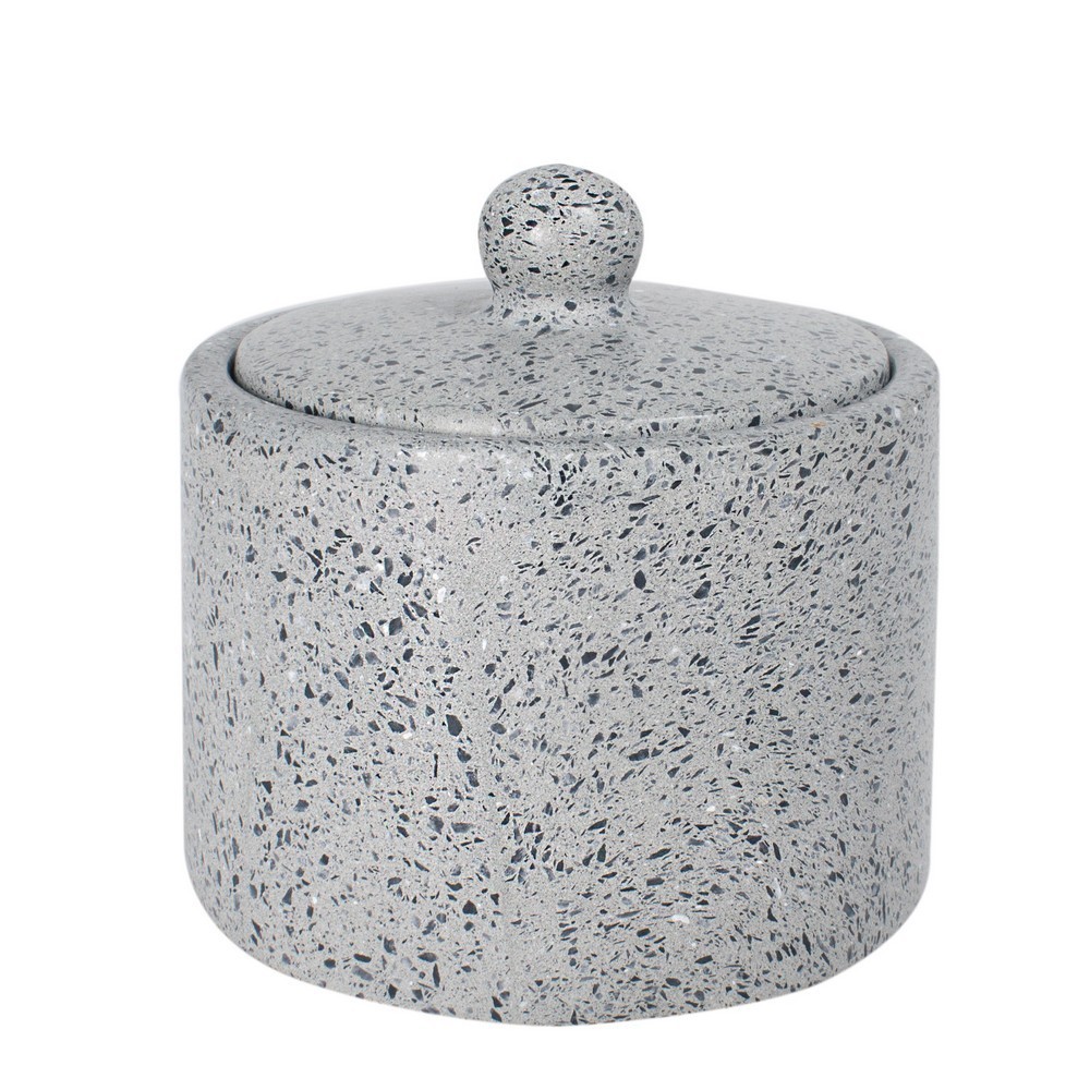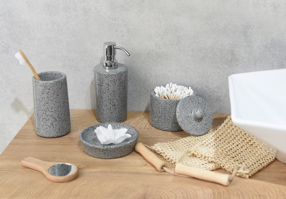 Stylová kosmetická nádoba s víkem je jedním z prvků kolekce Perfect Minimalism - koupelnových doplňků Q-BATH z teraca. Bezkonkurenční kvalita použitého materiálu a jedinečný a klasický design z něj činí jeden z nejkrásnějších prvků naší kolekce. Je šedé barvy s charakteristickými, tmavšími akcenty. Nádoba je určena na kosmetické předměty. Stane se také stylovým doplňkem každého toaletního stolku nebo místem pro uložení cenných šperků.