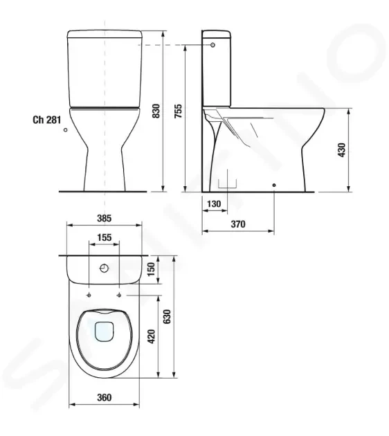 WC sedátko a splachovací nádržka nejsou součástí dodávky, je třeba objednat zvlášť. (viz. související výrobky)