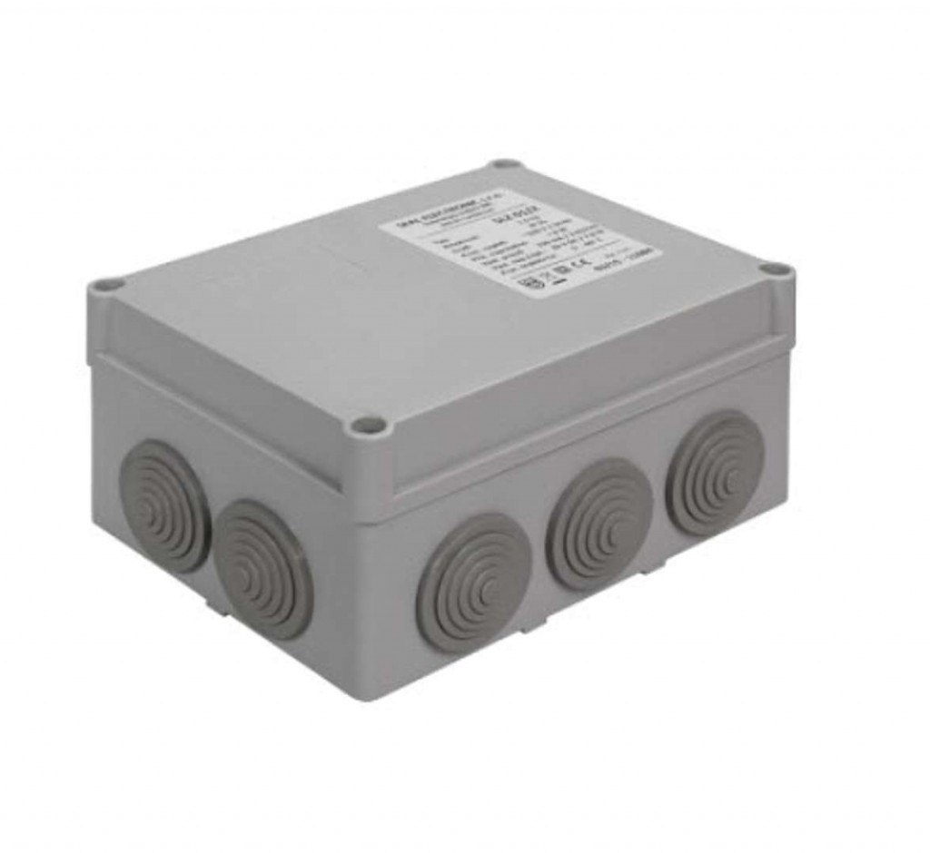 - výstup z vestavěného zdroje je tvořen dvojlinkou, která se připojí ke svorkám elektroniky, přívodní kabel s napětím 230 V/ 50 Hz se do montážní krabice přivede pomocí průchodky